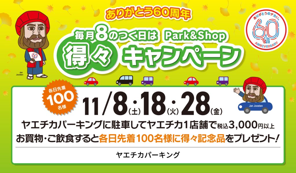毎月8のつく日は、ヤエチカパーキングPark&Shop得々キャンペーン