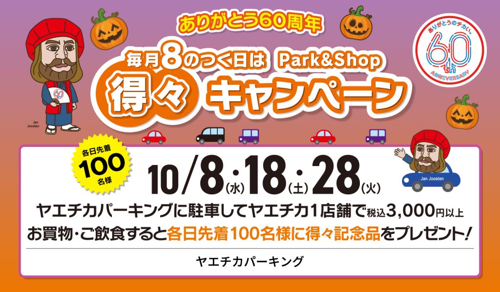 毎月8のつく日は、ヤエチカパーキングPark&Shop得々キャンペーン