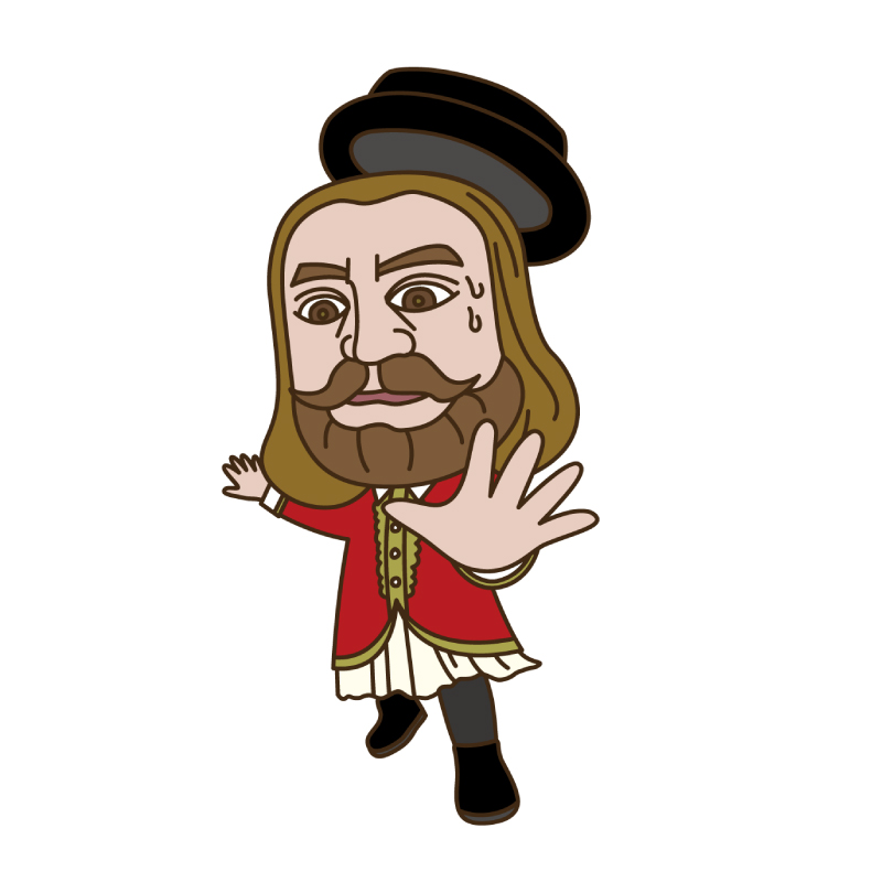 ヤエチカでは、銅像をベースとした「ヤン・ヨーステン」のイラストが度々登場します。